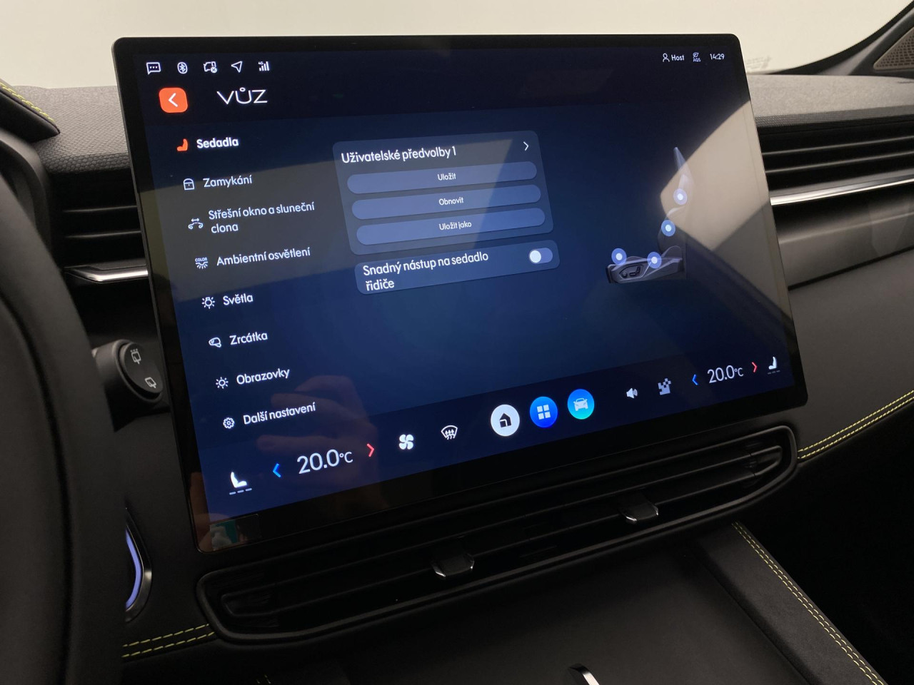 - paměť nastavení sedadla řidiče
