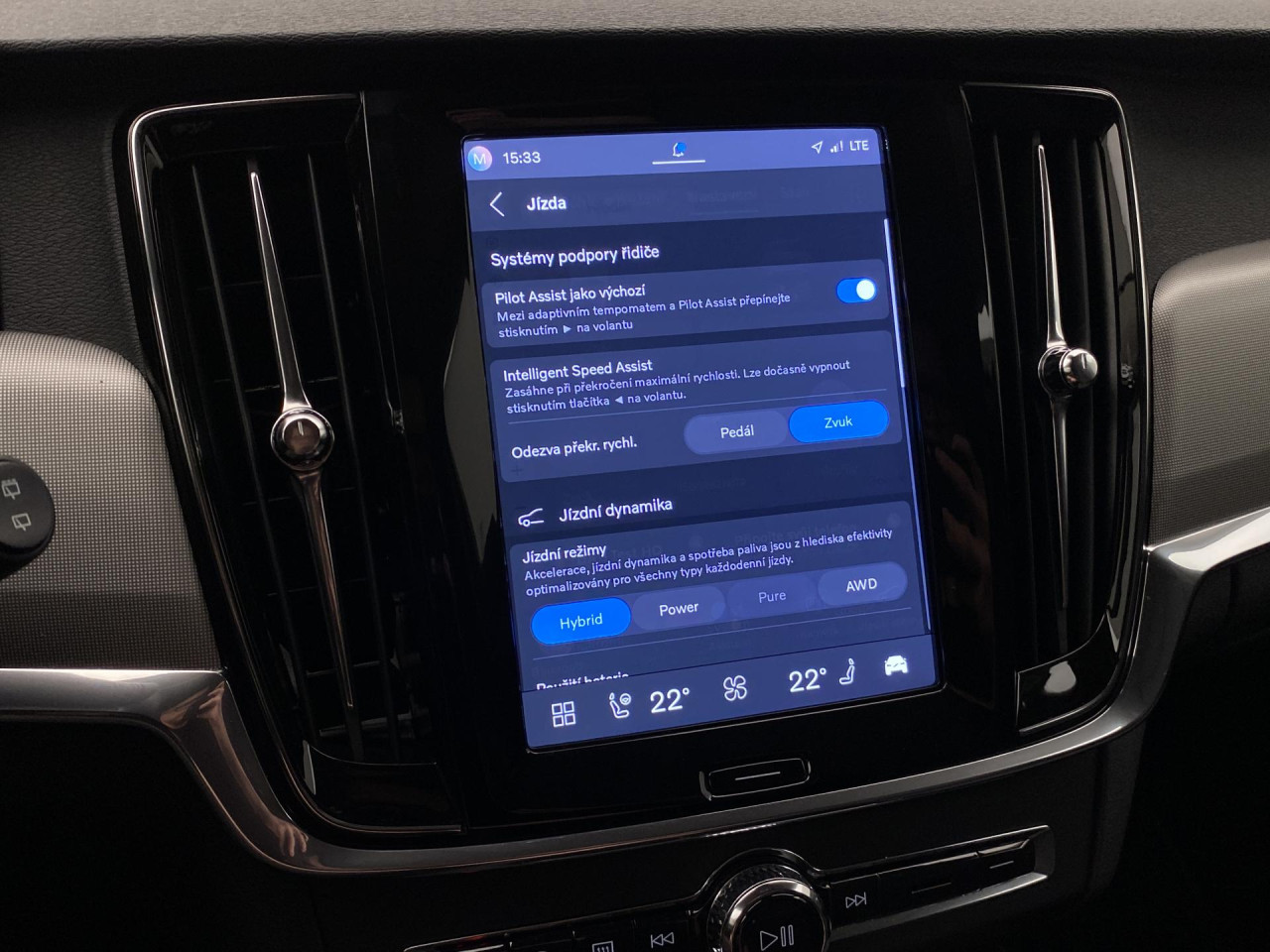 - volba jízdního režimu