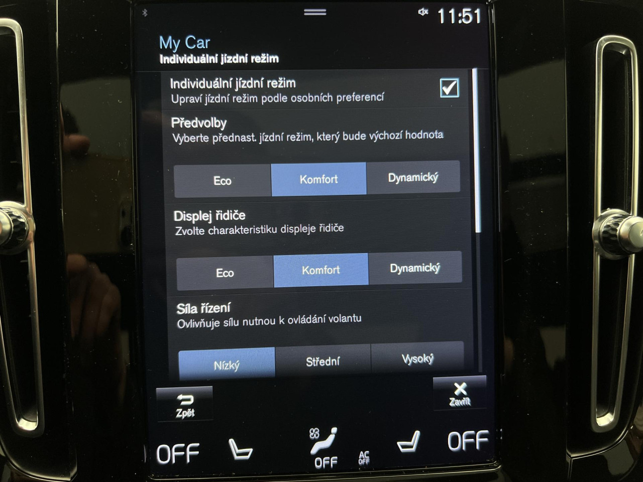 - volba jízdního režimu