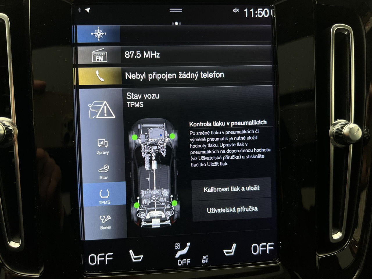 - senzor tlaku v pneumatikách