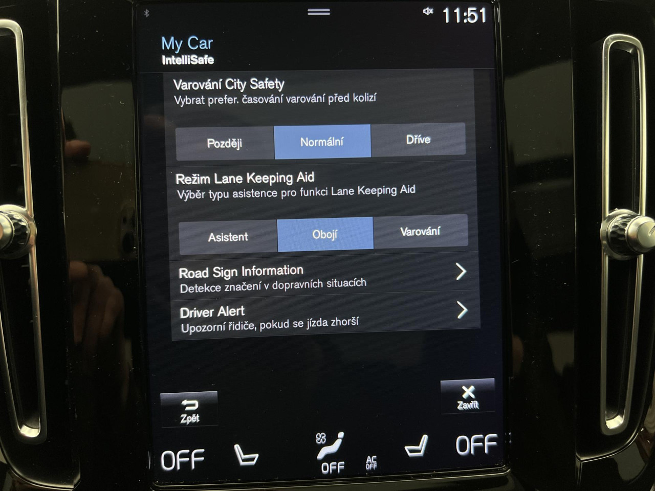 - deaktivace airbagu spolujezdce
